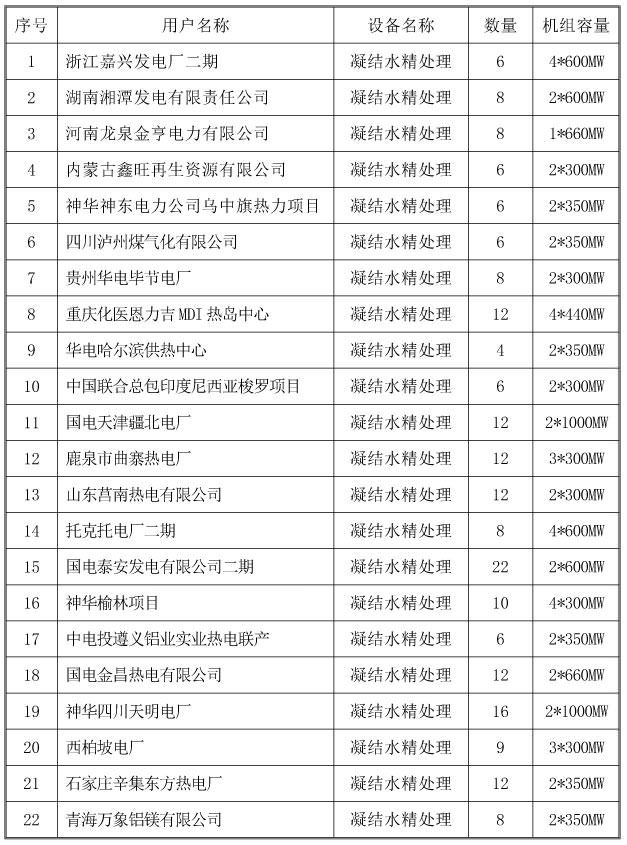 凝結水精處理業績